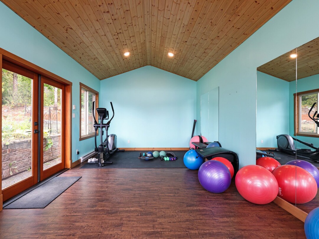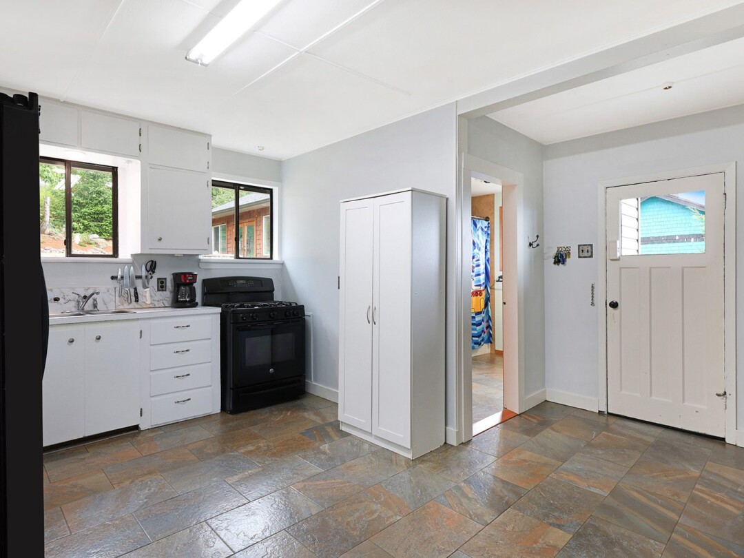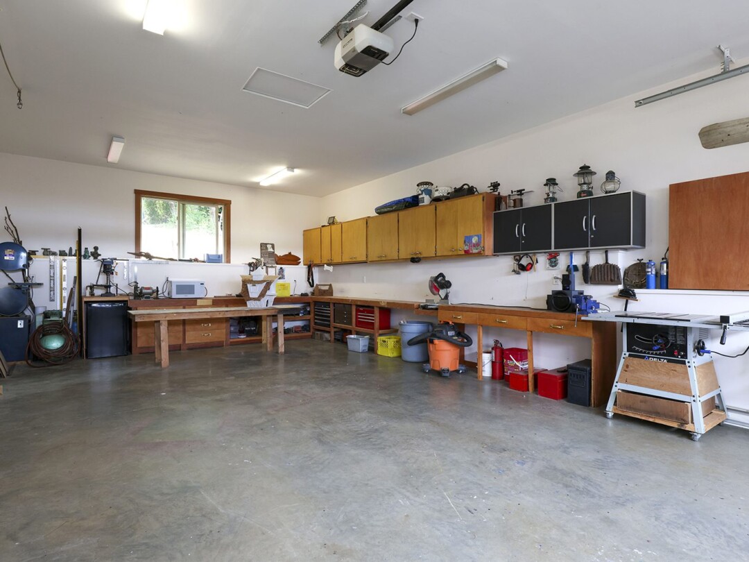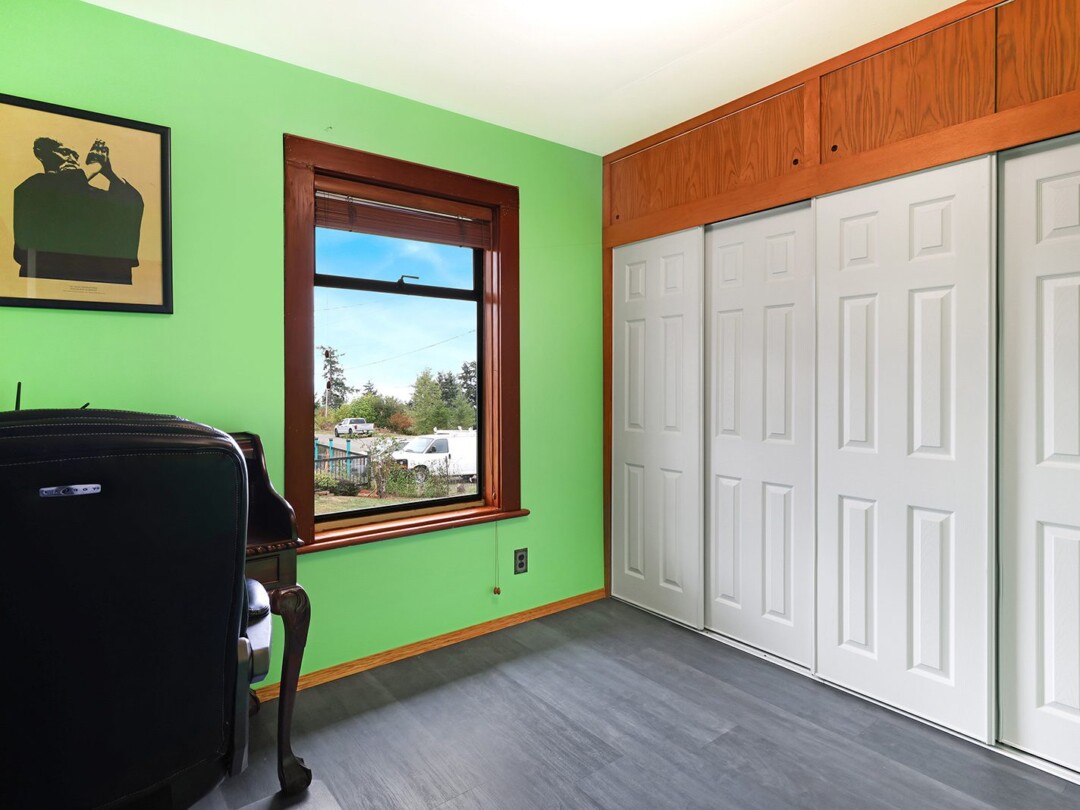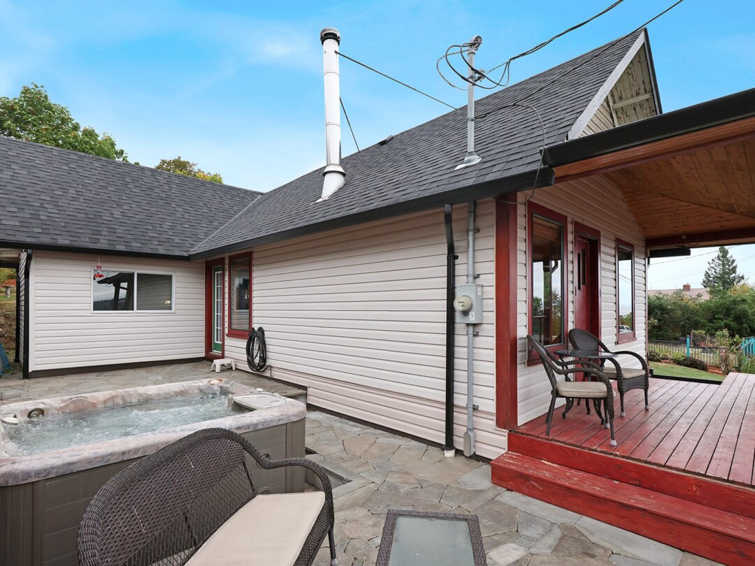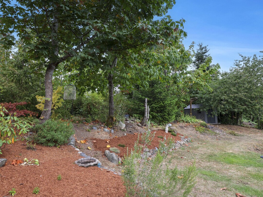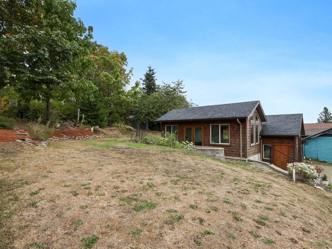 The yard gets plenty of sun and is prime for growing veggies – plus it backs directly onto the discontinued railway tracks, providing a private buffer of natural vegetation. The shop is the clincher here though! Built in 2014, there is 560 sq ft for your vehicles or woodworking shop, plenty of power, and oodles of extra crawl space storage as well. The attached studio makes a stellar gym (with ocean views) or a perfect work-from-home office. The newer roof on the home tops off this package.
