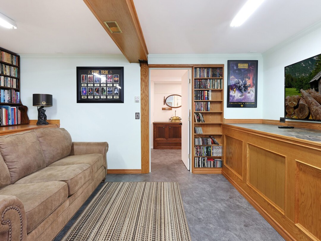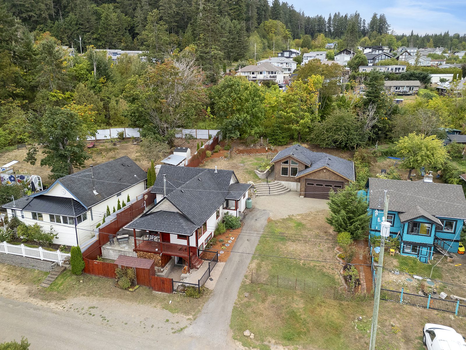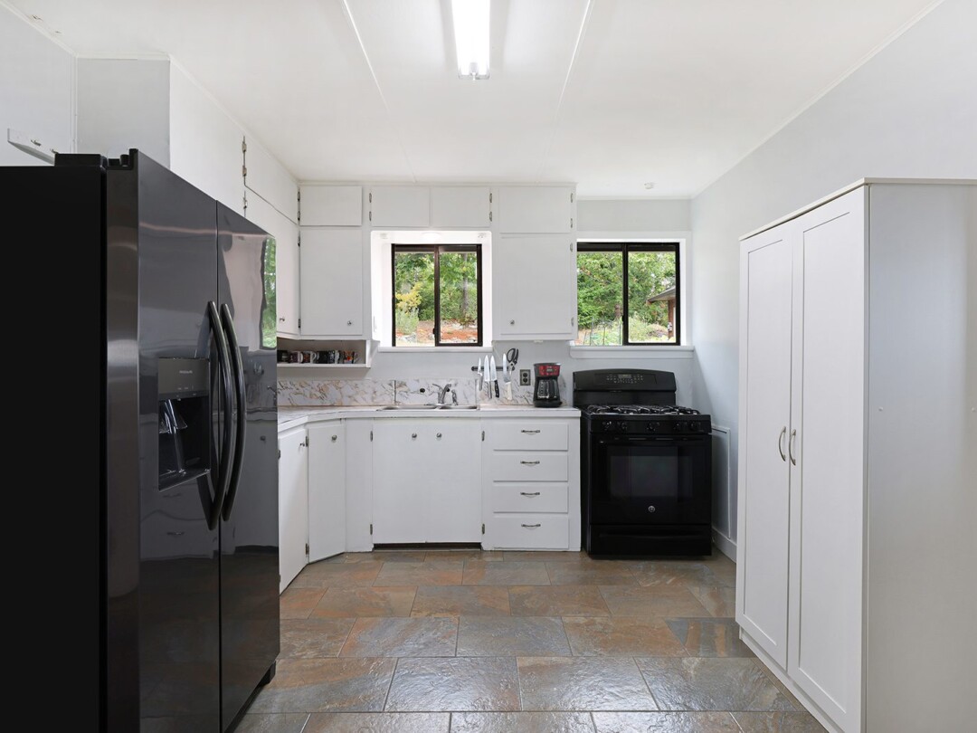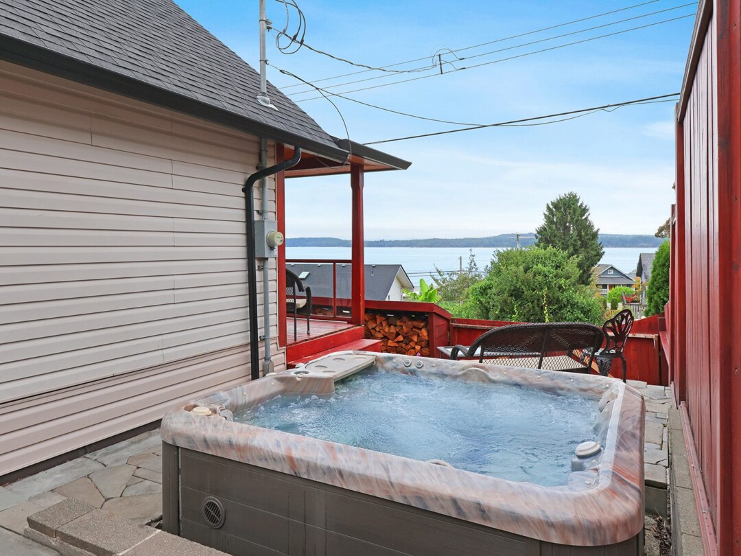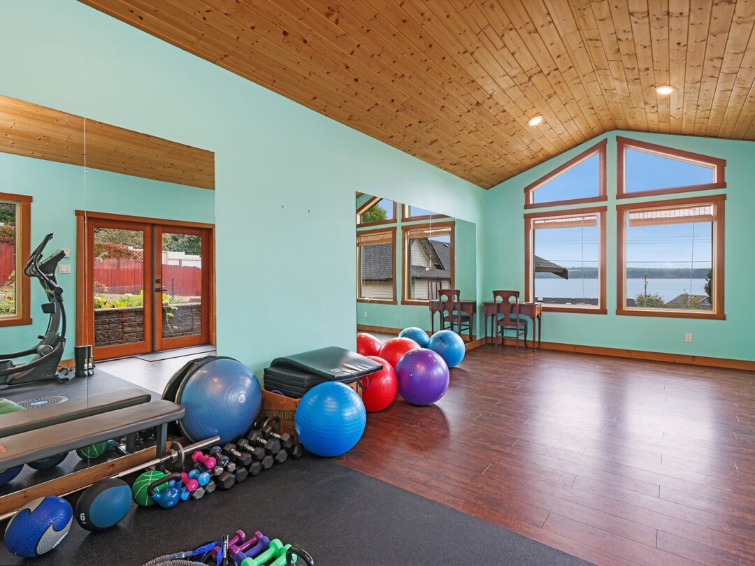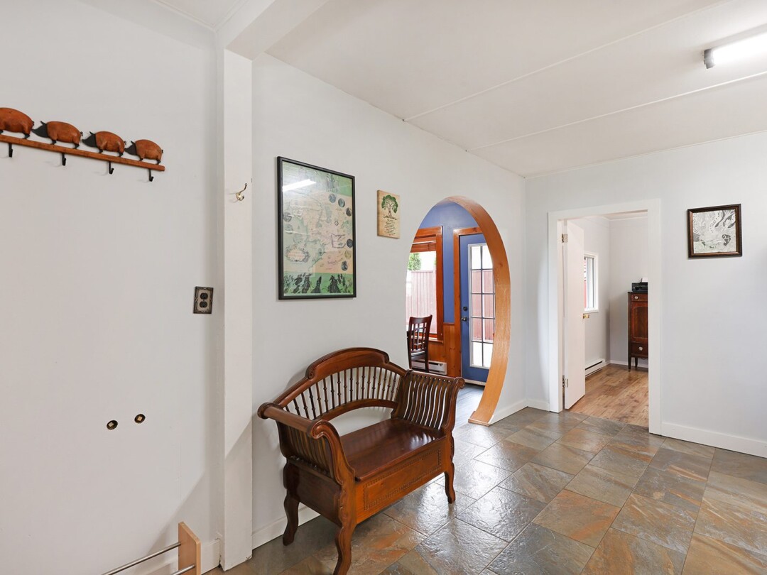 The yard gets plenty of sun and is prime for growing veggies – plus it backs directly onto the discontinued railway tracks, providing a private buffer of natural vegetation. The shop is the clincher here though! Built in 2014, there is 560 sq ft for your vehicles or woodworking shop, plenty of power, and oodles of extra crawl space storage as well. The attached studio makes a stellar gym (with ocean views) or a perfect work-from-home office. The newer roof on the home tops off this package.